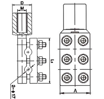 The copper-embedded pole holder clamp is suitable for the connection of round rod terminal piles and aluminum conductors or busbars. It has the advantages of relatively light engineering cost and economical benefits, and is suitable for rural power grid transformation.